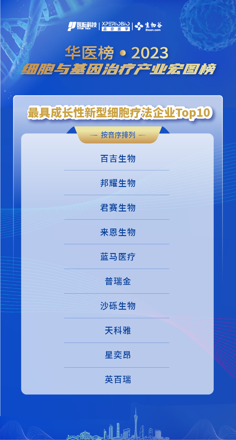 本次入選華醫(yī)榜·2023細胞與基因治療產(chǎn)業(yè)宏圖榜最具成長性新型細胞療法企業(yè)Top10,是對天科雅生物在創(chuàng)新療法領(lǐng)域的能力、成長力及影響力的充分認可和肯定。天科雅生物將繼續(xù)立足自身,推進新型細胞療法的創(chuàng)新研發(fā)與產(chǎn)業(yè)化,助力細胞治療行業(yè)發(fā)展。